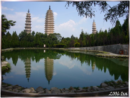 三塔是崇聖寺的地標,相傳以前洱海氾濫,居民為了鎮壓居住在洱海的水龍而建此三塔,中間的塔壓住龍頭,而兩旁的塔則壓住龍鬚,自此不再有水患。